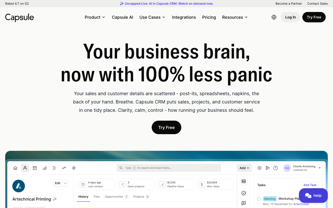 Capsule is the CRM for teams who tried Salesforce and HubSpot and found them bloated, expensive, and ignored by the people who were supposed to use them.