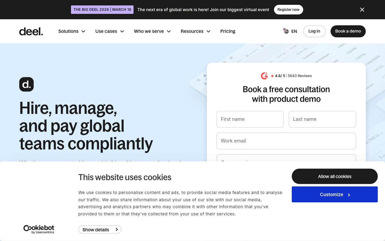 Hire anyone, anywhere, with full compliance handled for you. Start with Deel's free HRIS and scale from there.